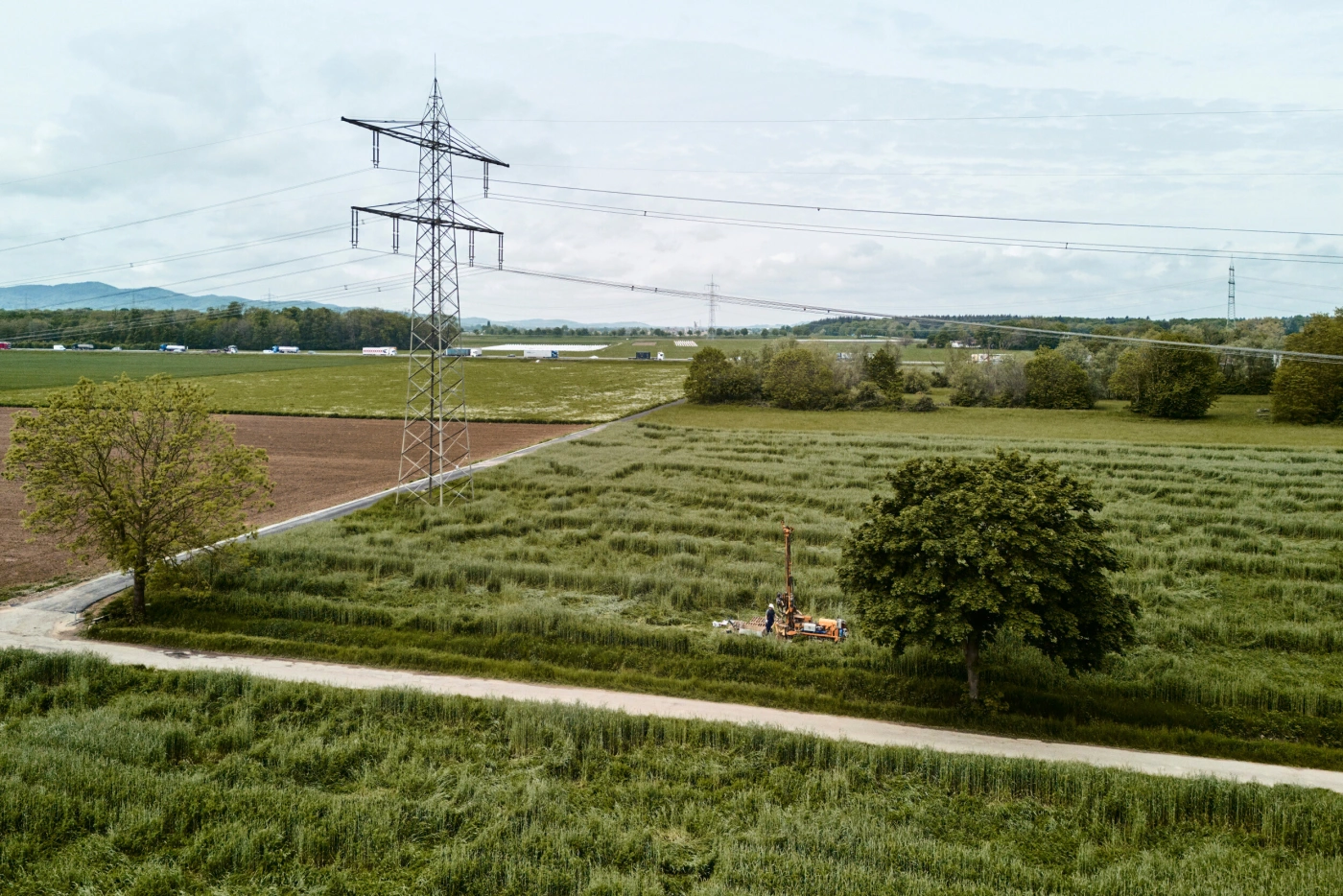 Meine Aufgabe war es, die Arbeiter bei der Erstellung einer Baugrundunterwuchung zu begleiten. Für neue Strommasten der Transnet BW muss zunächst der Boden statisch überprüft werden. Um diese Baumaßnahmen in einer Kommunikationskampagne der Bevölkerung darzustellen sollte es fotografisch festgehalten werden, um bei Infoveranstaltungen darüber zu informieren.